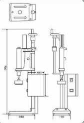 ■操作方法 1, あらかじめボトルにキャップをのせ、軽くしめておきます。 2. ボトルストッパーに容器を固定させます。 3. 運転レバーを押すとキャッパー部が自動的に回転し、閉栓が完了します。 ■仕様図面 ![]() |