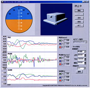 慣性情報、姿勢情報の計測 XYZ各軸の角速度と加速度、およびそれらに基づく姿勢演算結果(ロール角、ピッチ角、ヨー角)を出力します。