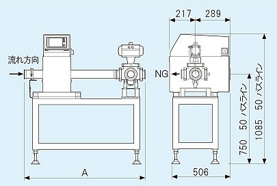 ■Vモード検査時の感度比較 ※検出感度は、商品により異なる場合があります。 ![]() ■より高感度を得るためには ●適切な大きさをコイルを選ぶ、商品に合わせたコイルサイズを選ぶ事が大切です。 ![]() ●個包装の状態で検査する 小さなコイルで検査する事で、感度アップが期待されます。 ![]() ●検査品を均一な厚みにする・薄くする 均一で薄い商品や、偏よりが無い方が、安定した感度を保てます。 ![]() ●商品の温度を低くする・温度変化がないようにする 温度が上がるほど商品影響が大きくなります。 ![]() ■充実の管理機能 USBデータ管理(オプション) USBメモリを使用して、パソコンへ履歴データを移して利用できます。(10,000件保存可能) ![]() ■豊富な履歴機能 ![]() ■ネットワークによる管理(オプション) LAN接続によって、複数台の機械のデータをパソコンで管理できます。 ![]() ●アクセスモード選択 不慣れな作業者による、誤った設定変更などを防ぎます。モードの変更にはパスワードが必要です。 ●通信機能を強化 シリアル4ポート、LANを装備し、パソコン通信、ラベラー連動、バーコード連動、プリンタ取り付けなど同時に使用可能。 ![]() ■清掃性(HACCP対応) ●コンベア簡易脱着 繁殖に清掃が必要なコンベア部は、工具なしで簡単に脱着できるので、洗浄も楽々。 ![]() ![]() ■シンプル構造 水タイプ機はシンプルなフレーム構造でオールステンレス仕様。 清掃しやすく、衛生的です。 タイミングベルトはフレームの外側にあり、搬送ベルトと干渉しません。 ![]() ![]() ■防塵・防水規格IP66をクリア 水物のラインにも高感度対応。水洗いも可能です。 ![]() ![]() ■寸法図 ![]()
