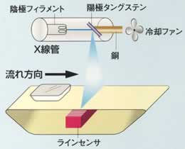 ■重量チェック機能(オプション) ●異物検査と重量チェックが同時に可能 ![]() ●連包製品を連続して重量チェック(短包製品も可) ![]() ■X線発生の仕組 ![]() ■X線被曝量の比較例 ![]() ■外部メモリー書出機能 ![]() ![]() ■タイプ