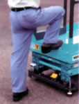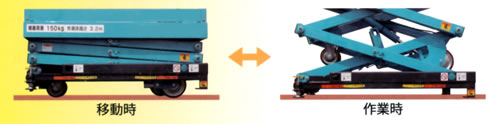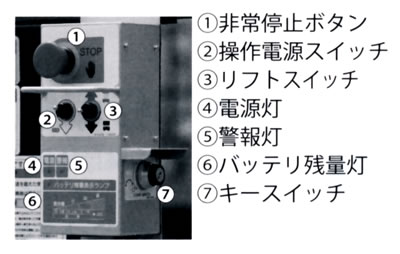 | ■特長 ●特定自主検査・特別教育不要 特定自主検査や特別教育の必要がありませんので、自走式の高所作業車と比べて気軽に導入できます。 ![]() ●ウォークスルーデッキ 作業に便利なウォークスルーデッキを採用。 前後どちらからでも乗り降りが可能です。 ![]() ●低床で乗り降りがらくらく 油圧機器、バッテリを作業床の床下に収納することで、 シザース型にもかかわらず、わずか54cmの低床を実現し、 ワンステップで乗降りが可能です。 ![]() ●安心の安全装置 高所作業車に装備されている安全装置を丸ごと採用しました。 傾斜地で上昇を規制する車体傾斜角警報装置を標準装備しています。 ●足踏みパーキングブレーキを装備 ![]() ●下部フレームが自動接地 作業(上昇)時にフレームの4点が自動接地するため、 シザース構造と相まって抜群の安定感を実現します。 ![]() ■作業床操作パネル ![]() ■下部操作パネル ![]() ■安全装置 ・急降下防止装置 ・車体傾斜角規制装置 ・過積載規制装置(油圧リリーフタイプ) ・非常停止装置(非常停止ボタン) ・非常用降下装置 ・昇降警報装置 ・スイッチガード ・足踏みパーキングブレーキ ■トラック積み込み センタ吊りフック採用 ![]() ■フォークリフト移動 フレーム下にフォークの差込み場所を指定 ■仕様