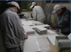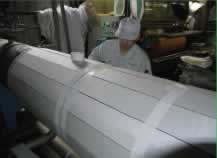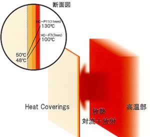 | ■地球環境保護に貢献 わが国の温室効果ガス排出量の9割が二酸化炭素(CO2)です。 そのうち、約9割の発生量がエネルギーに起因しており、省エネルギーは地球環境の保全に不可欠な取り組みです。 ■エネルギー費を削減 今まで見過ごされていた炉の外面、排気ダクト、温水槽などの保温断熱を実行することで、省エネルギーが図られ、燃料費や電力料金の削減ができます。(省エネルギー法では、炉の側壁外面は80℃以下に定められています。) ■防熱・火傷防止等安全性が向上 これまで見過ごされていた職場環境の改善や軽度の火傷などを防ぐ事ができます。 ■全員参加の省エネ活動 施工箇所・施工方法の検討・社内施工・セルフメンテナンス等により、従業員の省エネ活動への参加が可能となり、省エネ活動が活性化します。 ■予算に合わせた施工が可能 社内施工により、分割施工が可能となります。生産の空き時間を利用して効率的な施工をご検討ください。 施工面積に比例して効果が増大致します。 ■施工費用の低減 超薄型・軽量の材料ですので、カッターやハサミ等で簡単に加工ができ、耐熱両面テープと布テープや耐熱アルミテープ等市販の材料で施工できます。その為、自社施工も可能な材料です。 ■簡易施工 材料のR部への追従性は限度がありますが、形状を工夫することにより、平面・曲面等への施工が可能です。 多少の隙間は、効果にほとんど影響がありません。また、既存保温断熱材の部分補修にも最適です。 ■意匠性 表面カバーシートで仕上げることにより、性能と意匠性が大幅に向上します。 また、表面カバーシートの貼り替えや重ね貼りにより、簡単にリフレッシュ可能です。 * 設備に施工する際は、機械が停止した状態で施工面が常温になっている事を確認後、作業して下さい。 (施工面の温度が高いと両面テープ接着力が低下します。) * HCカット面で指などを切創する場合がありますので、手袋等保護具の着用を御願い致します。 * HCを施工しますと、乾燥炉等の内部温度分布が変化する場合がございます。 施工後は、必ず制御系のチューニングと試験生産を行ってください。 * 施工面積に比例して効果がでますので、一度に全面に施工する必要はありません。 * 屋内及び水・薬品のかからない部位でご使用下さい。 ■施工面の事前処理 ・施工面の油分や水分を取り除いてください。 ・施工面に錆がある場合は、サンドペーパーで錆を落とし、埃や汚れを取り除いてください。 ・耐熱両面テープは、初期接着力が弱い傾向がありますので、少し時間をおいて接着状況をご確認ください。 ■HCの裁断方法 ・施工面の形状にあわせ、カッター、ハサミ等で加工してください。 (カッターによる切断は、表側(ガラスクロス側)から行ってください。) ・カッターは、刃先が鋭利な状態でご使用下さい。 ・ハサミは、できるだけ大きいタイプをご使用ください。 ■耐熱両面テープの施工 ・両面テープは、最初に設備側に貼り付けても、HC側に貼り付けても性能に影響はありません。 施工個所に応じてご検討ください。 (障害物の少ない個所は、設備側に施工された方が施工効率は上がると思われます。) ・原則、HCの4辺が、両面テープで固定されている状態にしてください。 ・両面テープは、接着力がでるまでに時間がかかるタイプがあります。 ・両面テープを貼った後は、ローラー等で十分圧着し接着状態を確認した後、離形紙を剥がしてください。 ■HCの施工 ・HCと耐熱両面テープとの接合個所をローラー等でしっかりと圧着してください。 ・耐熱両面テープは、初期接着力が弱い傾向がありますので、しばらく時間を空けて接着状況をご確認ください。 ・施工面の形状により、HCがR状になる場合は、ケースに応じて、耐熱アルミテープ等で上から補強してください。HCが、層間剥離する場合がございます。 ■HCのジョイント部 ・HCの断熱効果は、施工面積に比例して効果がでますので、ジョイントに隙間があっても、効果にはあまり影響がございません。 ・HC端面から水や蒸気が侵入する可能性のある場合、シール材や耐熱アルミテープ等で小口を塞いで下さい。 ■表面カバーシート ・意匠性向上のため、表面カバーシートを用意しております。必要に応じて御使用をご検討ください。 ■その他 ・HCは、耐熱両面テープ、布テープ、耐熱アルミテープ等の市販材料による簡易施工とセルフメンテナンスを特徴とした製品です。 施工部位や状況に応じて、各種テープでの補強・補修方法をご検討ください。 ■主要原料 コルク・ゼオライト・ガラスクロス(GC)・アルミガラスクロス(ALGC) ![]() ■M1223C-F720F/M1223C-F740F構造(平面用) 4層構造 厚み7.0mm ゼオライト1mmGC+コルク2mmALGC+コルク3mmALGC+ゼオライト1mmALGC(表側→熱源側) ■M1223C-P11F(配管用長尺タイプ) 5層構造 厚み11.0mm ゼオライト1mmGC+コルク3mmALGC+コルク3mmALGC++コルク3mmALGCゼオライト1mmALGC(表側→熱源側) 【用途】 ■熱処理炉・乾燥炉の外壁に ■空調ダクト