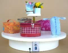 | ■用途 商品を載せて、カンバンを載せて、いろいろ回って目立ちます。 ※オプションで速度変化や正逆回転も可能です。 ■使用例 ![]() ■サイズ テーブル径 400〜850mm、高さ 115mm ■製品使用