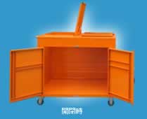 扉のロック機構に、ダストボックスでは類の無いコンテナハンドルを採用。 いままで観音開きの欠点とされていた耐久性と安定感を改善しました。 |