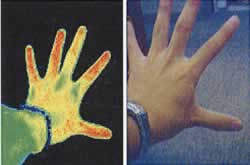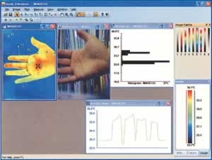 | ■特長 サーモグラフィーのユーザーにとって大きな悩みの1つが、持ち運ぶには大きすぎる形状、長時間使うには負担となる重すぎる重量でした。 携帯型サーモグラフィーM1231MR-M4Rは完全にその悩みを解決しました。 M1231MR-M4Rは、誰もが持っている携帯電話と同じくらい、持ち運びに便利です。 重量は何と325g! 1kgを超えるサーモグラフィーが多い中、驚異の軽量化を実現しました。 ![]() ![]() ![]() ■アプリケーション パワープラント・工場設備の保守点検 夜間警備・人体検知 基盤熱分布撮影 研究開発 ■操作性 設備点検など持ち運びが長い用途で抜群の威力を発揮します。 可視カメラ内蔵。赤外画像では視認しにくい場所も可視画像との比較が簡単です。 ■抜群の携帯性 非常に携帯性に優れていますので、設備点検などの持ち運びが長い用途で抜群の威力を発揮します。 可視カメラも内蔵されており、プラント内の天井部分など赤外画像では視認しにくい場所も可視画像との比較で簡単にわかります。 設備点検に最も優れたサーモグラフィです。 ![]() ■ズボンのポケットに入るので持ち運びが楽々。 ![]() ■胸のポケットにだってすっと収まる携帯性。 ![]() ■ちょっとした遠出には付属のソフトキャリイングバッグで。 ![]() ■多彩な機能と充実のソフトウェア 機能は満載。コンパクトなボディに2倍デジタルズーム、音声録音機能を搭載。 可視画像力メラも搭載。熱画像撮影をより簡単にします。 撮影した画像は付属のソフトウェアで解析できます。 撮影された熱画像の全素子の温度データ表示をはじめ、撮影画像の色使いの調整、指定範囲内の最高温度・最低温度・平均温度の表示、ラインを引いてそのラインのプロファイルを表示、ヒストグラムで画面上の温度分布を表示、アイソサーム機能で指定温度範囲を指定色で表示、全画素の温度情報をExcel形式で出力他、熱画像の解析機能満載。解析後はワード形式の報告書にボタンで情報を貼り付けるだけで簡単に報告書作成ができます。 カメラ上でも簡易な解析が可能です。 ![]() ■望遠レンズ オプションの望遠レンズで遠方の対象物も測定が容易になります。取り付けも簡単。 ![]() ■可視画像切り替え 可視画像モードへの切り替えもボタン1つ。 撮影時には可視画像は熱画像と共に保存されます。 ![]() ■モニターからのビデオ出力 ビデオ出力を使えばお手持ちのモニターから熱画像をご覧頂けます。 (下の写真はモニターよりビデオ出力時のイメージです。) パソコンにデータ転送をしなくとも、撮影しているその場で簡単な熱画像解析も行えます、フレームレートは60Hzのフレームレートで、動画としての動きもスムーズです。 ![]() ■標準セット 赤外線サーモグラフィー、リチウムイオンバッテリー2個、バッテリーチャージャー、USBケーブル、ビデオケーブル、イヤホン、コンバーター、解析用ソフトウェアCD ROM、ソフトキャリイングバッグ、ハードキャリイングケース、取扱説明書 ![]() ■仕様