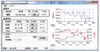 小型の気象データ観測装置です。 気温、湿度、視程を測定、保存することが可能です。 電源を入れてパソコンにつなぐだけで、簡単に気象データが測定できます。 測定結果はソフト上で表示するだけではなく、任意の時間間隔で保存可能です。 小型軽量で持ち運びが容易なので、野外試験における環境条件として、気象データの収集にご利用頂けます。 |