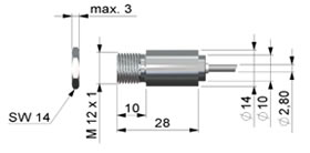 | ■特長 ●アナログ電圧出力1-5V 出力ケーブル3.5m ●耐熱ヘッド採用、-20℃〜120℃の環境で使用可 ●小型ヘッド M12×28mm 取付金具(オプション) ■外形寸法図(センサヘッド部) ![]() ■取付金具(オプション品) ![]() ■測定視野範囲図 ![]() ■仕様
