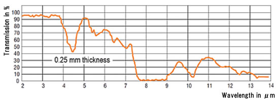 ■ポリエステルフィルムの赤外線透過率の例 (厚み0.25mm)