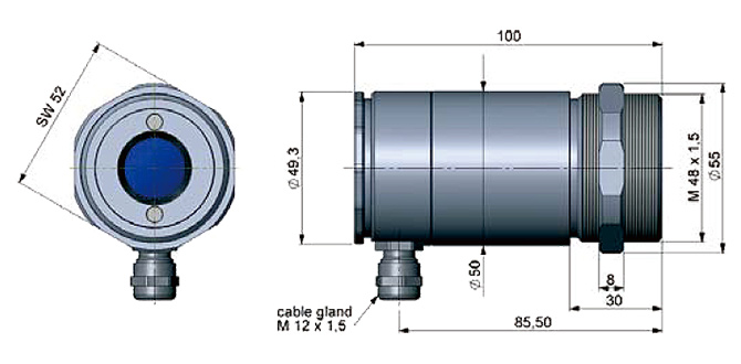 外形寸法 センサヘッド:φ49.3×100mm(M48×1.5mm)