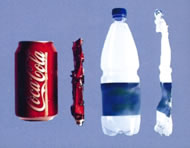 | ■特長 ●100V電源があれば、どこでもペットボトルや缶類をクラッシュし、1/3~1/4程度に減容することができます。 回収容器や袋などにより多くのペットボトルや缶類を詰めることができます。 ●クラッシャーのカッターローラーは特殊な焼き入れ処理と研磨がされた鋼材を使用していますので、堅牢で高い耐久性があります。 また、カッターローラーはペットボトルや缶類が復元しないように特殊な形状(特許取得済み)をしています。 ご注意:スチール缶は少量づつ処理する必要があります。 ●特別な形状のブレードが付いたシャフトがペットボトルや缶類を確実に送り込みます。 更に、排出スクレーパーにより、クラッシュされたペットボトルや缶類が詰まらない構造となっています。 万が一、詰まった時でもスイッチ操作で停止させたり、逆転させることができます。 ●クラッシャーの運転状態(運転準備完了・過剰負荷・ドアが開いている・コンテナ満)がディスプレー上に表示されます。 なお、クラッシャーが2分間使用されないと、省エネを考慮して自動停止状態となります。 ●メンテナンスも容易です。 2週間に一度:機械上部のスリットから、カッターローラー全体に注油してください(下写真(右)参照)。 年に1度:駆動チェーンのたわみのチェックと油油を行ってください。 ![]() ■場所を取らないうえ、安全にまた簡単に操作ができます。 ●特殊な焼き入れ処理と研磨がされた鋼材を使用したカッターローラーは堅牢で、高い耐久性が あります。 ![]() ●特殊な形状のブレードが付いたシャフトがペットボトルや缶類を確実に送り込みます。スチール缶は少量づつ処理してください。 ![]() ●ペットボトルや缶類をクラッシュし、1/3~1/4程度に減容することができます。 ![]() ●ペットボトルまたは缶を投入ケースに投げ入れて、投入ケースを引き上げ、電源を入れますと、クラッシュが始まります。 ![]() ●投入ケースのペットボトルまたは缶がなくなり、クラッシュが終わりましたら、ドアを開けて収納袋を取り出します。 ![]() ■仕様