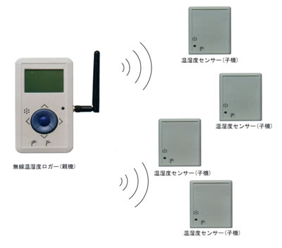 無線多点温湿度ロガー(親機)は、温湿度センサー(子機)を複数台ワイヤレスで接続できる温湿度ロガーです。 親機で測定データを記録だけでなく、子機にも記録機能を搭載することにより通信障害が発生しても測定データの消失が有りません。 内蔵時計により、計測データが日時ともに記録されています。 |
