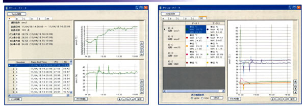 | ■特徴 ●新規1台に、ワイヤレスで最大16台の子機が接続可能。 ●ルータ機能を使用することにより長距離の子機での計測が可能。 ●大型液晶、スイッチを搭載することにより親機での設定を実現。 ●子機の記録機能により、通信異常にも測定データの取得が可能。 ●温湿度の異常時にメール配信(オプション) ![]() ■用途 ●倉庫の各場所の温湿度の管理 ●ビニールハウスの各箇所の温湿度を記録 ●工場の各箇所の温湿度を記録 ■アプリケーションソフト ![]() ■仕様 ●親機