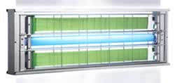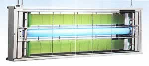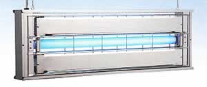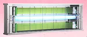 | ■特徴 オールステンレス(SUS304)使用。捕虫器の定番商品。 虫が好む365nmの紫外線ランプで誘引し、専用の強力粘着テープで捕獲します。 害虫をテープで捕獲する事により、異物混入、虫混入の対策だけでなく、その害虫が運んでくるO−157等の細菌による食中毒も未然に防ぐ事が出来ます。 また、捕獲された虫を分析する事により発生源、進入経路等の対策が出来、HACCP(ハセップ)対応としてお役に立ちます。 殺虫剤の様に薬剤を散布しないので人体に影響はなく、高電圧の電撃殺虫器とも違い嫌な音・臭い・煙はなく、虫の死骸が飛ぶような事も無いので安全で清潔な作業環境が作れます。 捕虫テープは主成分にポリブテンを使用の為、乾きにくく強い粘りがあり他社に無い超寿命を実現しました。 テープ交換は簡単なカセット方式で交換時にはテープに付いた虫に触れる事なく行えるので衛生的です。 国内で最多のバリエーションを誇り(25タイプ)どんな所にもマッチング出来る物をご提案致します。 昆虫同定検査にも応じます。 ・O−157のイエバエ対策にも有効です。 ・ハエ・蛾・ウンガ・羽虫・カメムシ等の昆虫を捕獲します。 ・フェロモン仕様にも応じます。 ・蚊に対して効果的な仕様もあります。 ■保護格子の着脱が簡単に 格子の取付けが簡単になり、作業効率がおよそ40%改善できました。 当社比。保護格子の連続着脱試験による。 ![]() ■たて型でも使用可能 新たに、たて型仕様がラインナップに加わりました。 また、別売オプションの格子取付金具により、たて型よこ型を自由に切り替えることができます。 *注意* たて型に切り替える場合は、格子取付金具(タテ)のほかに、壁付け板も必要になります。 ![]() ![]() ![]() ■タイプ