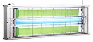 保護格子・ビス・クサリまでステンレス製(SUS304) 湿気が多い場所でも錆びません。 虫が好む365mm(ナノメータ)の紫外線で虫を誘引し、強力な捕虫紙で確実に捕えます。 |