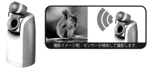 ■オプション ●オプションモーションセンサー/品番 M1302TM-211B オプションのモーションセンサーを使うと、センサーが人や動物の動きを検知したときに撮影を行って記録することができます。 手軽なホームセキュリティ用のカメラとしてもご使用いただけます。 ![]()