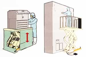 クリーンルームで使用できる発塵をおさえたシザーリフト。 | クリーンルーム用電動テーブルリフト 品番 M1343CL-0204AZ-07-02Mシリーズ 廃番 |