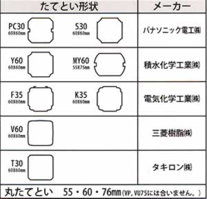 ■ゴミ取りフィルター付 取り外しやすいストレーナで、大きなゴミの除去と蚊などの侵入を防止。 ![]() ■様々な「たてとい」に対応 ●適合たてとい一覧(主に戸建住宅) ![]() ■寸法図 ![]() ■仕様