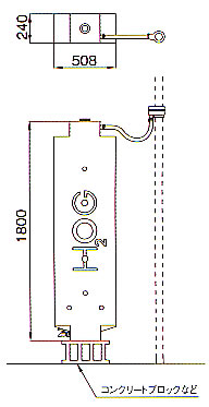 | ■床置きでも使用できます。 (床置きで使う場合は、ポンプを接続して下さい。) ![]() ■取水器付 ![]() ■寸法図 ![]() ■仕様