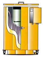 | ■特長 ●電気加熱は高精度の温度制御が容易です。 ●設定温度以上になることはない最も有効な省エネシステムです。 ●内容物の耐熱温度以下で制御することにより変質・変色することはありません。 ●全体を金属ケースで覆うことにより、外部からの衝撃にも支障のない強固な構造になっています。 ●電気加熱は、有害なNOx、SOxを排出しません。 ●騒音がほとんどありません。 ●メンテナンスにかかる費用が少なくてコスト削減 ●ドラム缶底面を加熱するベースヒーターの電気容量をパワーアップしたユニットです。 ●側面ヒーターとベースヒーターを各々独立させて温度制御することにより、昇温時間の短縮が可能となりました。 ●溶解・昇温に要する時間は内容物の熱伝導率が大きく影響します。 ●漏電遮断器を内蔵した温度コントロール盤を標準装備しています。 ![]() ■仕様