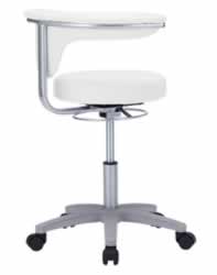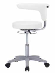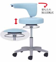 背もたれにも肘あてにもなる2WAYタイプ。 病院向けのウレタンレザー張りの丸椅子。 |