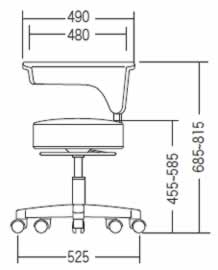 | ■特長 ●抗菌、耐アルコール性のあるビニールレザーを使用しています。 ●ガス圧リフト装置付きで、座面の高さ調節が可能です。 操作は座面裏のリングで行います。 ●背もたれは、独立回転式で、肘あてとしても使える2WAYタイプです。 ■背もたれ ![]() ■抗菌ビニールレザー