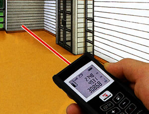 ●屋内型レーザー距離計 ●ワンタッチで目標物までの距離をデジタル表示。 ●バックライト付き液晶、3ライン表示で面積・体積測定の途中経過もわかる。 ●部屋角や隅からの測定もアイデア満載。 |
