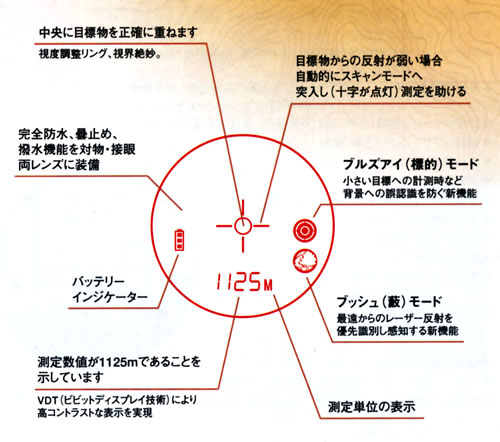 ラバー外装メタル設計、究極の完成度。 F・S・Pターボプロセッサを搭載し、制度±0.5m表示単位0.1m(5〜100m)を実現した。 VDT(ビビットディスプレイ技術)、レインガードHDレンズ、完全防水メタルボディなど 過酷な現場で最大の威力を発揮する為に仕上げられている。 |