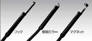 ●USB1.1端子付き(専用ケーブル付属)。SDカードデータをパソコンに直接転送できます。 ●ケーブル長さ(カメラ先端部直径)は M138VDF-G2M10H:標準10m(直径9mm)M138VDF-G2SLIMH:標準1.5m(直径6mm) ●スマートなドイツデザイン。人間工学に基づく操作性。 ■付属 カメラ先端部に簡単着脱。 側視ミラー・異物除去や採取に役立つマグネット・フックの3タイプの専用アタッチメント標準装備(M138VDF-G2M10H) ![]() ![]() ■M138VDF-G2M10Hの直径9mmのカメラ先端部。映像は180°回転可能。 ![]() ■主な用途
