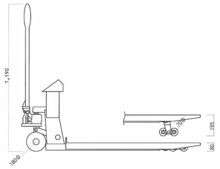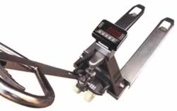●パレットジャッキ、ハンドパレットトラック、パレットトラック、ハンドリフト、ハンドフォーク、ハンドプラッター等と呼ばれ、荷物を載せるパレットを移動させるための器具に計量器を内蔵した画期的なはかりです。 |