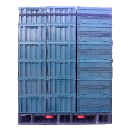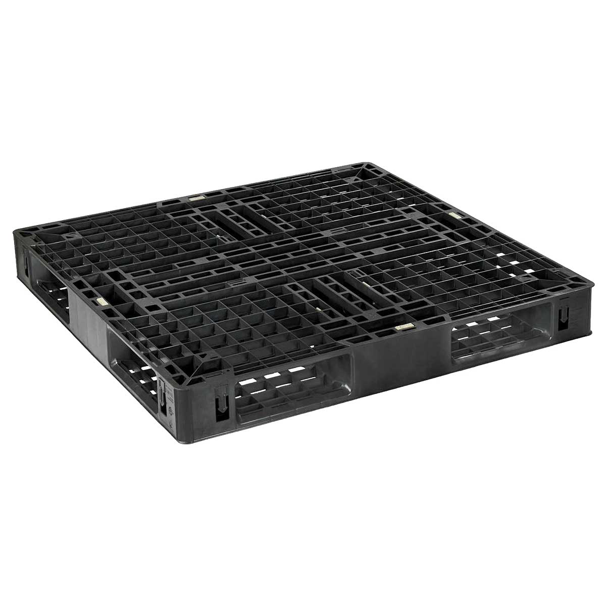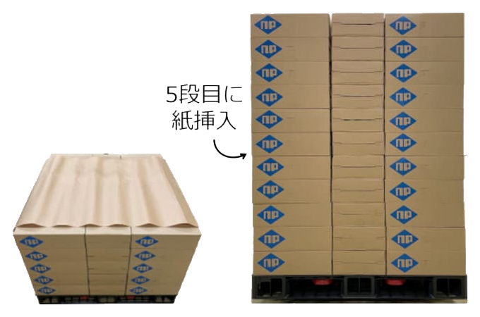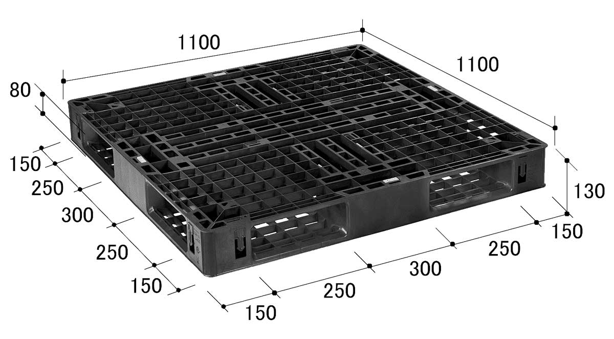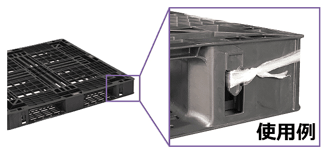 | ■特長 ●燻蒸・熱処理の手間や費用がゼロ オールプラスチック製なので、木製パレットのように輸出時に燻蒸や熱処理をする手間や費用が掛かりません。再生材を100%使用し、環境にも優しいパレットです。 ●薄型パレットで積載効率向上 パレットの厚みが130mmと薄く省スペースなので、トラックやコンテナへの積載効率向上に役立ちます。 ●梱包作業に便利なフック付き 荷崩れ防止で使用する、ストレッチフィルムの巻き始めやリユースベルトの装着に便利なフックを、パレットのコーナー8か所に標準装備しております。 ![]() ●平置き/段積み用です。 偏らないよう、パレットに均等に積み付けてください。 平置き/段積み保管のワンウェイに適した最低限の強度設計を行い、軽量化を図っております。そのため、ラック保管には向いておりません。ご注意ください。 ■ご使用の際は、荷崩れ防止措置を施してください。 曲げ強度が弱いパレットを使用する際は、リフトアップ時に「荷割れ」が起こり、そのままでは搬送できない場合があります 以下(1)~(4)のような対策(荷崩れ防止措置)を行うことで、搬送できるようになります。
