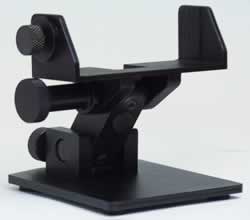 ■オプション ●M1415T-G40-PBFは省スペース型の簡単取付可能な卓上型固定台です。 2ヶ所のロックネジにより自由自在に高さ・角度を調節可能です。 ●M1415T-G40-PP1Fはクリップ先端部分に窪み形状設けることにより、プレパラート/細い棒状等もしっかりホールドすることが可能です。