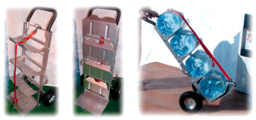 ●3ガロン・5ガロンボトル4本積載可能 ●ワンタッチベルトで簡単固定 ●ノーパンクタイヤでメンテナンスフリー ●ラバー付ハンドルで車載時車両窓を保護 ●横持ちも可能なサイド持手付き ●ボトル棚を全て畳むと箱物用2輪カートに変身 |