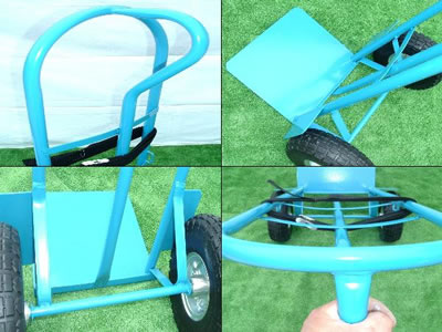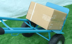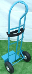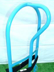 ●シングルハンドで方向転換できる2輪ハンドトラック。 ●ノーパンクタイヤ ●タイヤシャフトはメインフレーム一体溶接タイプでグラ付無し。 ●ベルト通し左右2箇所付 ●タイヤと積荷の接触防止用プレート付 ※黒ベルトはオプションです。 |