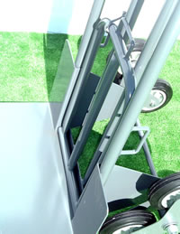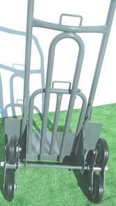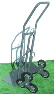 ●スチール6輪階段運搬車(フレーム強化型) ●荷台は本体側にフラットに格納されSフックで固定できます。 ●ベルト通し左右2箇所、上下2箇所付 ●他の段差カートより板厚・パイプ太さを1サイズ厚いものを使い強度を上げてあります。 |