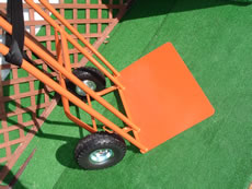 | ■特長 ●全高1710ミリととても高くしました。補助バーも備えテコの原理で倒しやすくしました。 ●大径ノーパンクタイヤ採用によりパンクの心配がありません。 ●荷台プレートもW600 D370mmと特大サイズです。 ●ベルト通しも4ヶ所装着しています。 ●幅45mm・長さ2.7mの荷締めベルトを1本サービスで付属しています。 ●すくい板は地面に接していますので箱物冷蔵庫などの底面に突き刺してテコの原理で倒して転がす…という方法で運んでいただけます。 ●バレットに乗せてない床面に直接置いてある品物の移動に威力を発揮します。 ●パレットに乗っている品はフォークリフトで運べますが、床に直接置いてある品はこのカートなら、床面にすく い板を突き刺して、テコの原理ですくい上げて、転がしてこれます。