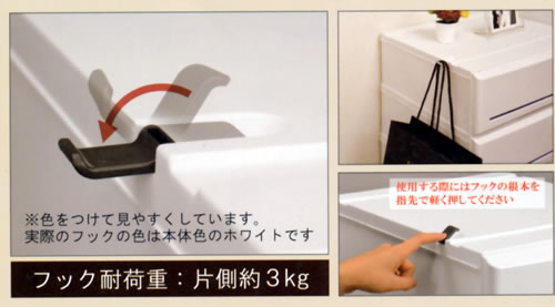 | M1433P350-1Sは1段につき3色(シルバー、ブルー、ピンク)のラインプレート付き。あなた好みのチェストが作れます。 取り付け、取り外しが簡単でお部屋に合わせてお好きな色で統一したり、段数ごとに色を変えて収納物の区別にも役立ちます。 付け替え可能のプレートなので、お部屋の雰囲気を崩しません。 ![]() ■特長 ●違う幅のサイズ同士でも横スライドで組み合わせらくらく 天面にはレールのような溝があり、積み重ねをしたときに簡単に横にスライドできます。 3サイズを自分好みに組み合わせ、自由に配置する位置を変えられます。 ![]() ●底面の脚がポイント 底面には4か所に脚がついています。 積み重ねをする際に天面レールの溝にはまり、しっかりと固定します。 また、本体を床に置いたときに傷をつけにくくします。 ![]() ●格納式フック付 天面には収納式のフックが2ヶ所ついています。 ベルトや帽子、ネクタイなどちょっとした小物をかけるのに最適。 使わないときは指1本でしまうことができます。 ![]() ●側面背面は壁構造 側面と背面は壁になっているため、隙間からホコリの侵入を防ぎ、お手入れも簡単です。 ![]() ■タイプ