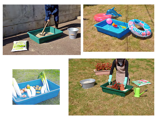 | 水槽、養殖、家畜のエサの配合、雨水の貯蔵などの使い方は様々。 頑丈で、用土づくりや植え替え作業はもちろん、セメントや砂のかき混ぜにも便利です。 ■タイプ