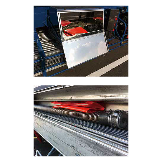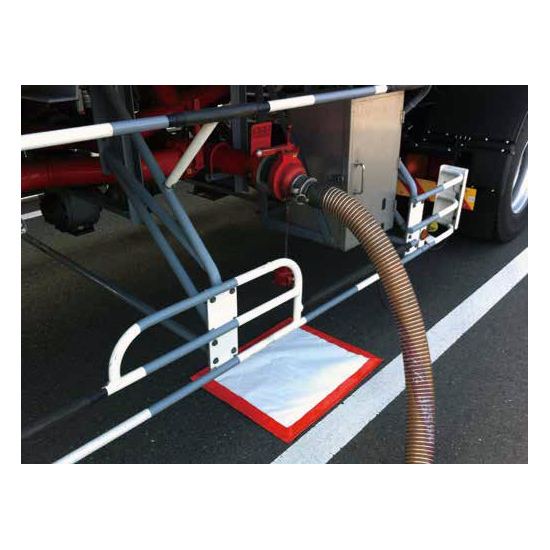 | ■特長 油を吸着するマット部分と、下に抜けないよう袋状にされたベースマットは簡単に交換できます。 収納スペースの少ないローリー車でも、ホースボックスや工具箱等の小スペースに折りたたんで収納が可能。 ベースマットは風が吹いても飛びにくい適度な重量設計。 可燃性の液体を取り扱う際に必須条件の制電加工処理を施してあります。 ■ボタ漏れ防止使用例 ![]() ■畳んで収納可能で、場所を選びません。 ![]() ■タイプ
