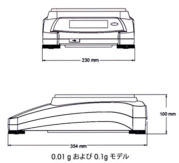 ステンレス計量皿、ダイキャスト金属製下部ハウジング、バックライト付き水準器、4 つの水平調整脚、