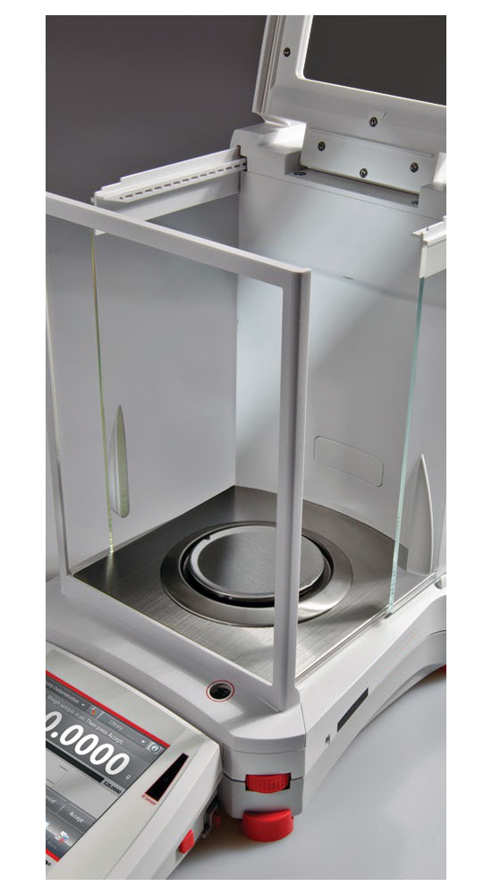 側面の風防ドアをスライドさせて開くまたは、上部ドアを上向きに蓋をあけるように開くかガラスパネルをスライドさせて開くことで、計量チャンバに快適にアクセスできます。