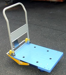 | ■特長 ●段差越えアシスト機能付だから安全に荷物をお届け。 ●床配線の出っ張りも、出入り口の段差もラクラク越えられます。(5cm程度まで) ●道路の沈下やひび割れなども大丈夫。 ●小さな溝も問題なく乗り越えます。 ●サッシレールや敷居を傷めずに運搬できます。 ●踏み板を足で操作するだけの簡単操作。ハンドルから手を放す必要が無いから安心です。 ●車から建物の中へ荷物を運ぶときや、屋外現場での運搬に大活躍。 ![]() ■台車後部のフットペダル(踏み板)を、足で踏むだけの簡単操作で、台車の前部が持ち上がります。 ![]() ■現在は↓画像のカラーになっております。 ![]() ■仕様