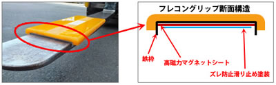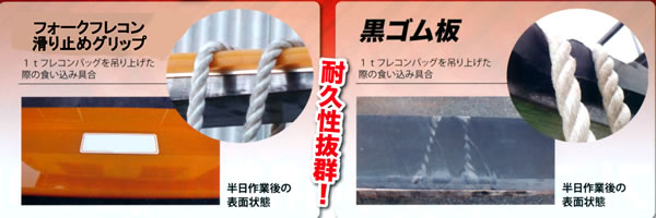 | ■特長 ●急ブレーキや急旋回、雨天時だって、滑らない!! 黒ゴムの5倍の摩擦力を有する耐摩耗ウレタンゴムを使用しております。 急ブレーキ時や急旋回、雨天時のフレコンバッグの滑りを防止し、ロープ切れも防ぎます。 ※下記の黒ゴムとの比較をご参照ください!! ![]() ●差し込みやすく、抜きやすいスマートな形状! 表面の摩擦力が高い為、凹凸や突起は必要ありません。 その為、フラットでスマートな形状を実現、爪の抜き差し時も引っ掛かりがなくスムーズに行えます。 ![]() ●置くだけの超カンタン着脱! 裏面には高磁力マグネットシートになっており、マグネット表面には特殊な滑り止め塗装を施しています。 爪の上に置くだけで磁力+摩擦力で吸着し、位置ズレしません。 ![]() ■フォークフレコン滑り止めグリップは黒ゴムとココが違う!! ![]()