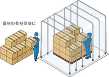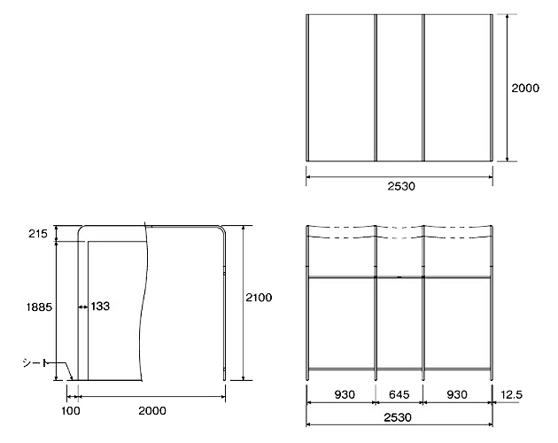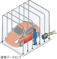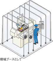 | ●伸縮・移動機能を省いた低価格タイプ ●長期間保管する資材置場のホコリよけとして、また集塵機を併用して溶接ヒュームや機械のオイルミスト対策のブースとしてなど、簡単に隔離された空間を作ることができるブースです。 ●伸縮・移動機能を省くことで従来製品M1470H-202225Zに比べ価格が約30%ダウン。 ●フレーム設計の見直しにより全高が100mm低くなり、内部の有効高さは100mm高くなりました。限られた空間をより有効的に使えます。 ![]() ■特長 ●ユーザー様組立方式 簡単に組み立てできます。3人集まれば30分程度組立可能 ●フレームとシートは面ファスナーで固定します。 ![]() ![]() ■注意 ●屋内設置用として設計されています。屋外での使用はできません。 ●本製品は軽量のため強風化における風よけの用途には使用できません。 ●内部での作業の際には換気にご注意ください。酸欠の恐れがあります。 ●遮蔽空間では室温上昇の恐れがあります。過熱・熱中症などにご注意ください ■使用例