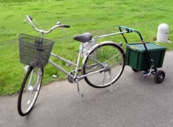 自転車に取り付けて、リヤカーで。 配達先で、運搬用・カートで。 ふたつ合わせて『デリバリー・リヤカート』です。 |