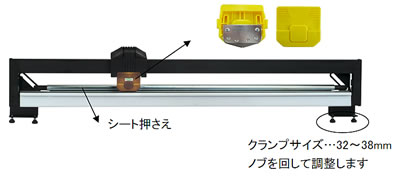 | ■特長 ●各種シートや紙等の切断作業に。 ●シートや紙のカットをスライド式カッターでスムーズに行えます。 ●適合幅:1060mm以下 ■仕様 ![]() ![]() ●圧縮バーの取り付け方法 ![]()