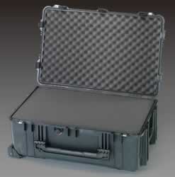 ●耐衝撃性樹脂製 ●ケースの緑にあるOリング(パッキン)がしっかりと防水防塵。 ●自動エアパージバルブにより、自動的にケース内外の圧力を均一にします。 ●ダブル・スローラッチ(2段階の掛け金式)でケースの開閉が簡単 ●南京錠を通す穴には金属プロテクターが取り付けられ、より頑丈になりました。 ●IP値の67 ●キャスターはポリウレタン製タイヤ(キャスター付のケースのみ) |