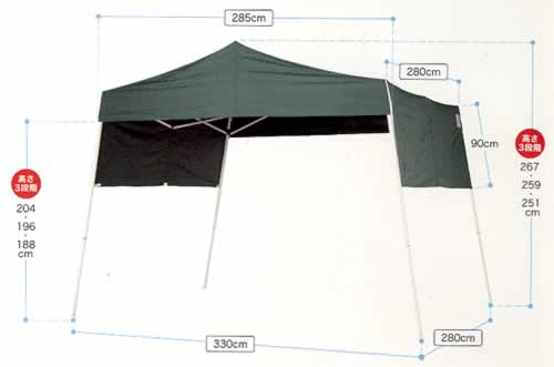 プロから個人までオールユーザー仕様の価値あるテントです。 高性能でリーズナブルな価格は、抜群のコストパフォーマンスを発揮。 間口は広く奥行きは浅いユニークなゆったりサイズは、野外店舗やブース割りイベントなどにぴったり。 大人数から少人数まで、ターゲットやシーンを選ばず幅広くご利用頂けます。 |