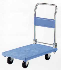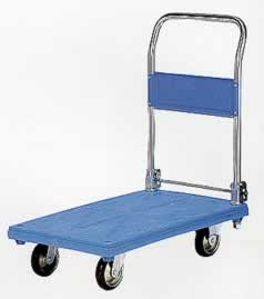 重い物、かさ張るものを目的の場所までラクラクに運搬。 ハンドルはクロームメッキ仕上げ 樹脂製ハンドトラック、ハンドルは折り畳み式 |