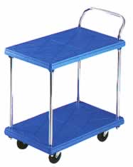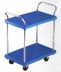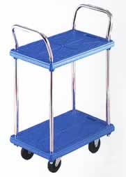 重い物、かさ張るものを目的の場所までラクラクに運搬。 ハンドル・支柱パイプははクロームメッキ仕上げ 2段片ハンドル付き、2段両ハンドル付き |