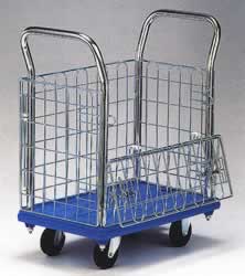 金網付樹脂台車、メッキ仕様 | 樹脂網カゴ台車 品番 M1518RBL-007S 廃番 |